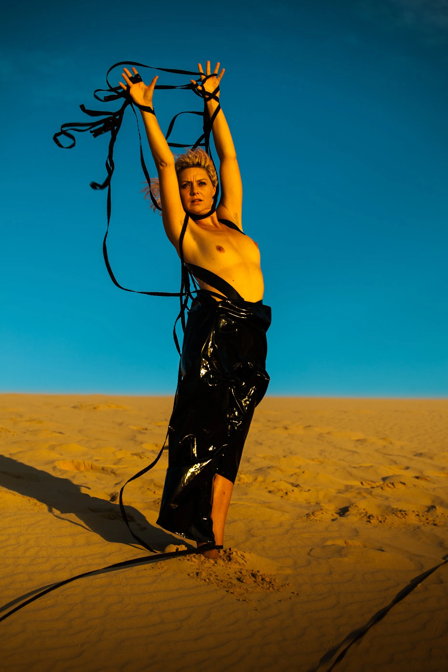 Opera singer, performer & artist Laura J King shot at Kurnell Sand Dunes with bushfire smoke of a late Australian summer casting an incredibly eery glow.